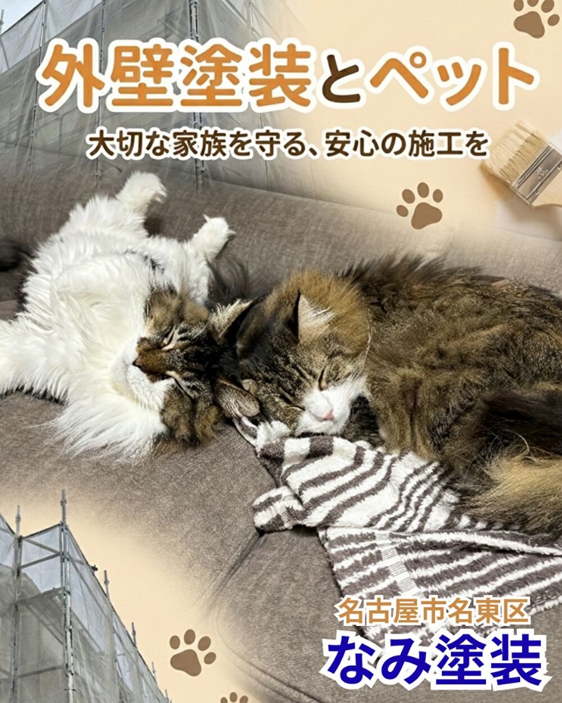 外壁塗装は約2週間ほどかかりますが、ペットにとっても「いつもと違う環境」になります🏠🐈
