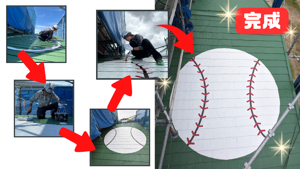 塗装を施した屋根に丁寧に縁取りを行ない、まずはボールの全体図を塗装👨🎨